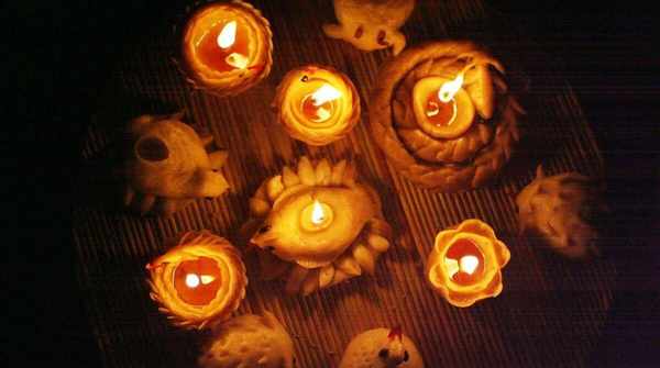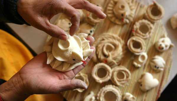 面燈一般都是做成黃豆面的,所以我們看到的面燈都是偏黃的顏色。一般面燈組成的食材主要是面粉、黃豆面以及水。面粉和黃豆面的比例大概在3:1左右,不能超過二分之一,如果超過的話這樣做出來的面燈比較粗糙。點燃面燈的話,我們用到食用油即可,另外用棉花和秸稈等材料做成燈芯,這樣就組成瞭面燈所需的食材。