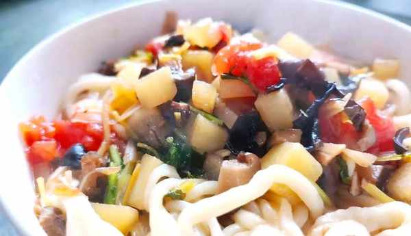 溫馨小貼士:1、喜歡吃肉的朋友,可以加入一些牛肉丁。2、喜歡吃辣的朋友,可以放一些辣椒醬(油)。