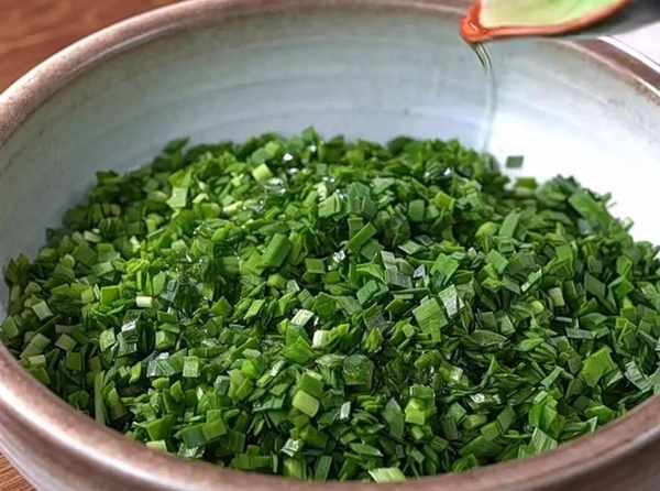 要想做出來的韭菜口感好,韭菜要直接用刀切細,不能用攪拌的。用刀切出來的韭菜,不會有太多的水分,稍等再包的時候更方便;