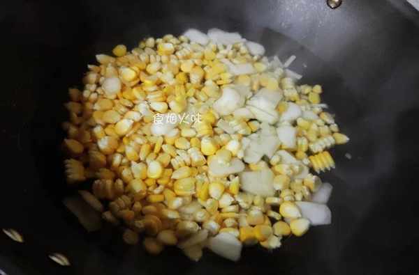 5.鍋中加入適量的水,水開後將切好的玉米粒及馬蹄倒入鍋中焯水。