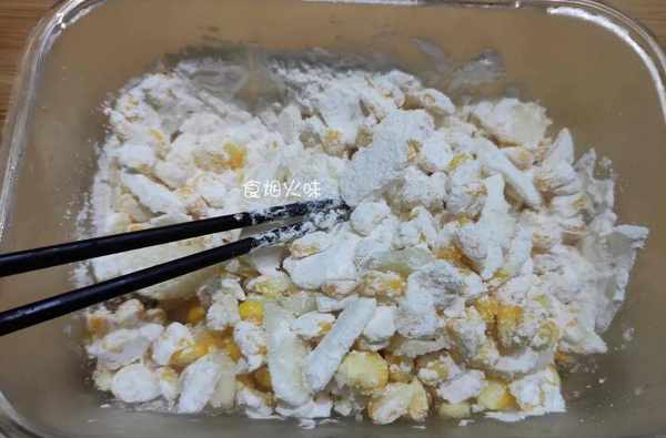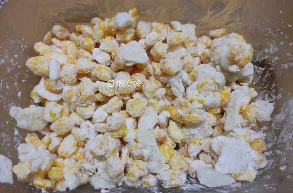 11.如下圖這種狀態,每顆玉米粒表面都裹上一層粉就可以瞭。