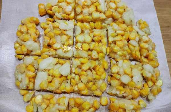 16.出鍋後的玉米馬蹄餅可香瞭,甜甜的感覺空氣中都充滿幸福感。出鍋後的玉米馬蹄餅放在油紙上。
