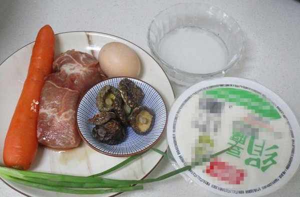 1.先要把食材全部準備好,豬肉絲和胡蘿卜就用瞭一半。
