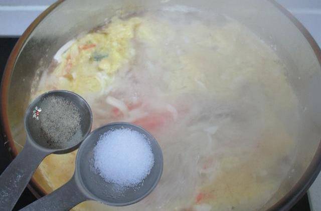 6.再開大火後開始加入鹽和白胡椒調味。