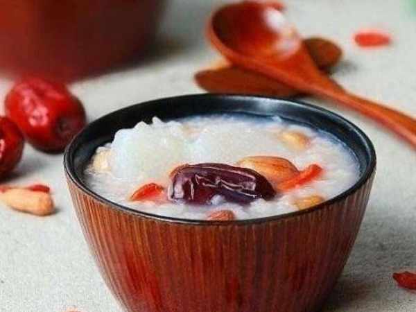 山藥、花生米各50克,大米100克,生薑8克,紅棗1個,鹽3克