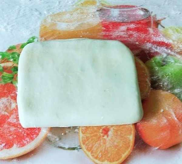 第20步、先將其粘在一起後壓扁再搟。