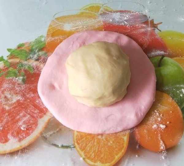 第5步、再揉成1個粉色面團覆膜防幹。
