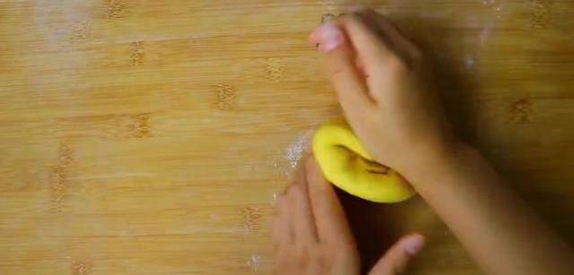 它揉成一個軟硬適中的面團,再準備100克面粉倒入剛才的南瓜泥。我們一起來看一下。先把它充分地抓勻。揉好後蓋上蓋子,在溫暖的地方醒40分鐘,醒好後先把他們分別揉勻。用切板分別等分成6份。