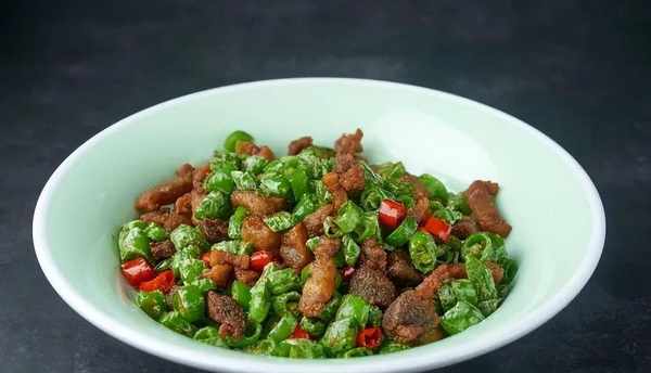 4、最後把所有食材翻炒均勻即可,香噴噴的豆豉炒油渣就出鍋瞭,特別的下飯。