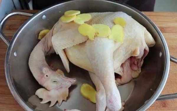 1、把雞處理幹凈後放入盆裡面,放幾片薑片,撒點白酒,撒兩勺的鹽,用手抓著生薑片在雞的每個部位都揉搓一會,讓雞肉入個底味。把生薑片塞入雞肚子裡面,放冰箱裡面冷藏,醃兩到三個小時。