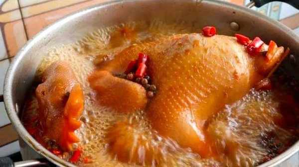 2、盆裡倒入80克辣椒段,25克麻椒,25克花椒,涼水浸泡十分鐘。炒個糖色,鍋裡倒入少量的油,加入一把冰糖炒到融化,一直炒到顏色變成棗紅色,加入熱水攪兩分鐘。熬好的糖色到碗裡備用,再切點生薑片和蔥段,辣椒和花椒泡好瀝幹水分後倒入盆裡面,往盆裡加入少量的白酒,白胡椒粉攪拌均勻備用。
