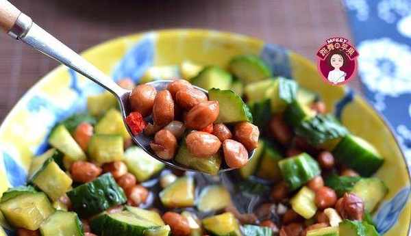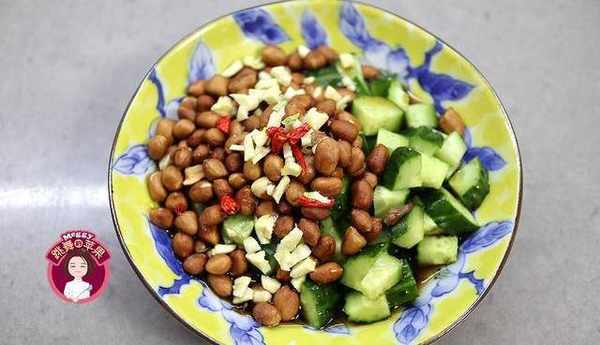 這道老醋花生中的黃瓜和醋都是強堿性食物,隻有花生是中酸性的食物,但是跟數量多的黃瓜及醋比起來,它就被弱化瞭。