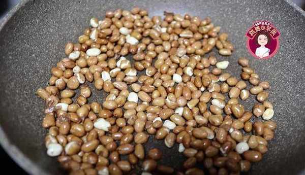 4.小火,不時地用鏟子扒拉花生米,或者端起鍋來晃晃,使其受熱均勻;炒到花生米全身都油光光,冒出香味,並且有不少花生皮已經爆裂瞭;如果用很多油炸,花生皮基本都是完整的,咱隻用瞭幾滴油,花生米相比油炸來說受熱不均,所以會導致部分花生皮爆開;
