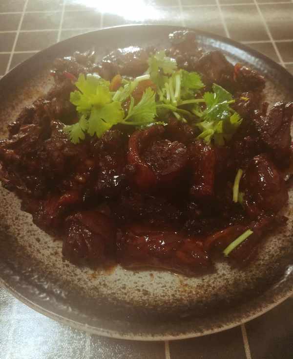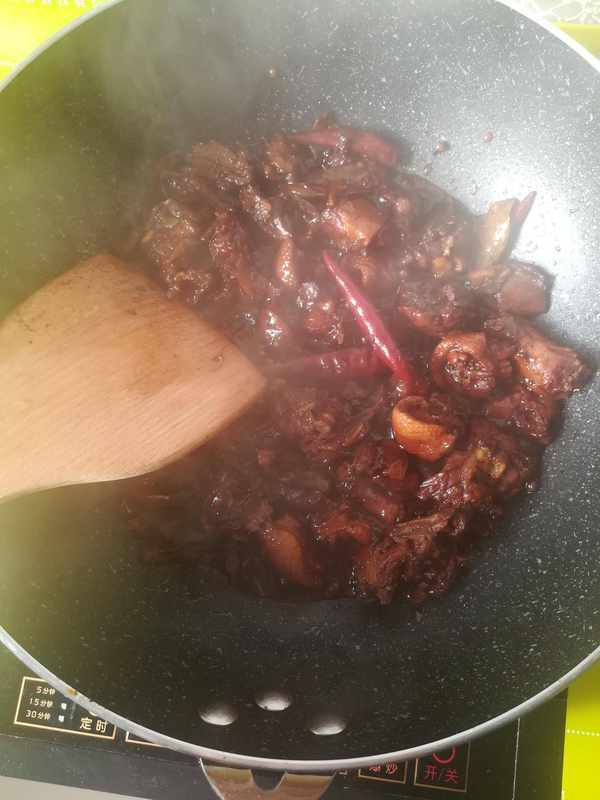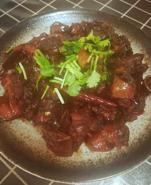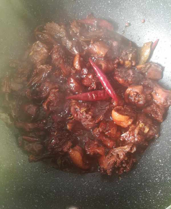 第四步:鴨塊燉20分鐘後,開大火收汁好吃的啤酒鴨就做好瞭如圖