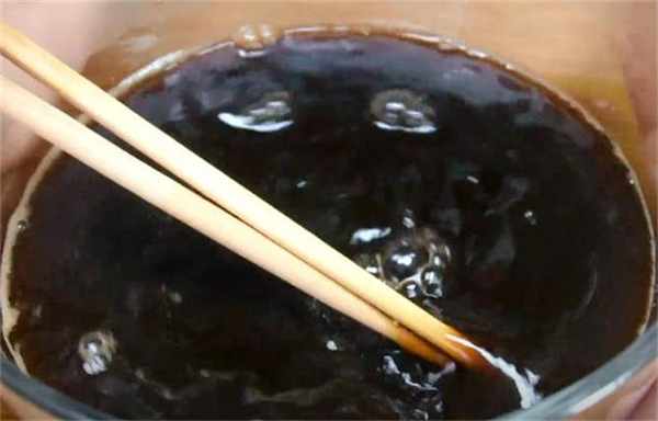 1.這是60g的紅糖,倒入270g的開水,把紅糖化開,攪勻之後放到一邊晾涼。