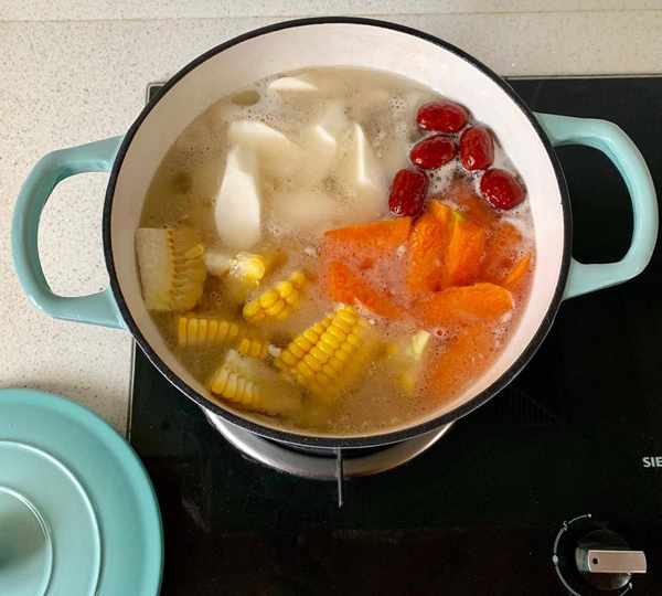 倒入玉米、胡蘿卜、棗子中小火煮20分鐘