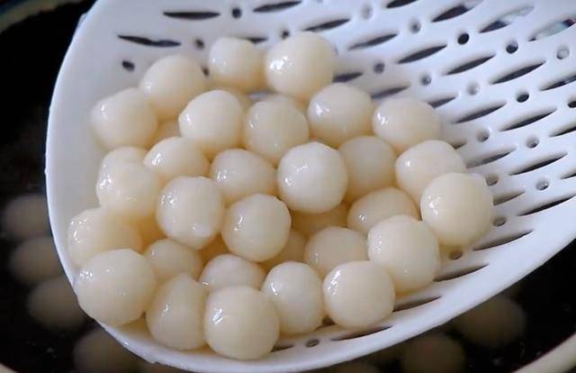 全部搓好後,開水下入小湯圓,煮到全部浮起,沒有硬心,撈出過下涼水,口感更好。