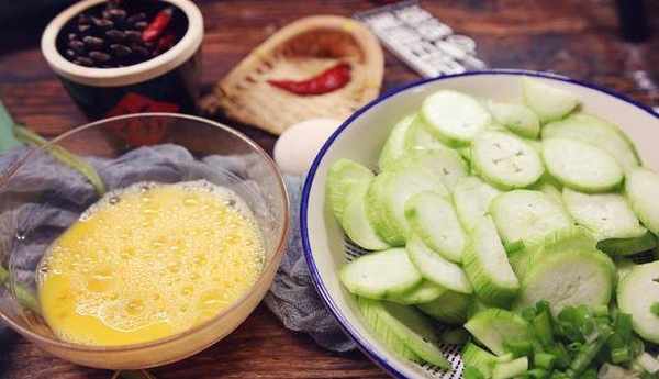 把絲瓜小蔥都洗幹凈切好,雞蛋打散在碗中備用