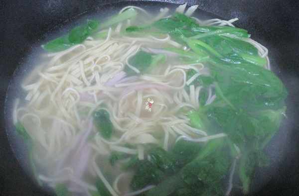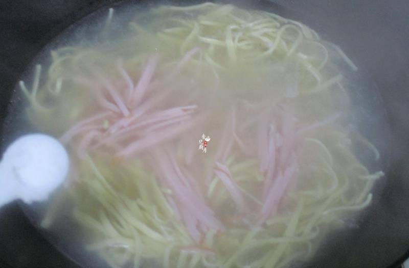 5.煮制片刻等煮出火腿絲的咸鮮味後再嘗試一下味道後加鹽調味。