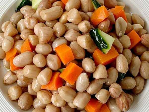 食材準備:花生米、胡蘿卜、黃瓜、八角、香葉、花椒。