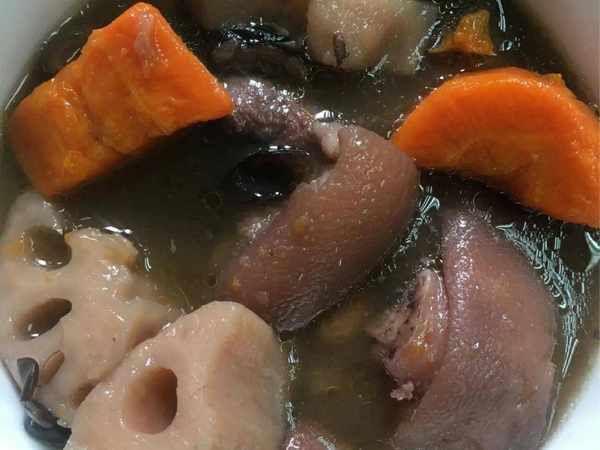 食材準備:黑豆、陳皮、紅棗、蓮藕、胡蘿卜、薑片、蔥段。