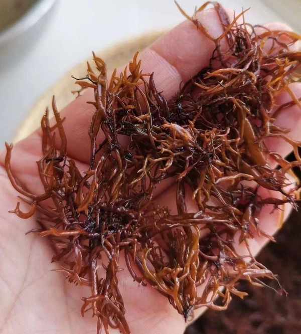 中文名叫海蘿,屬紅藻綱,內枝藻科,海蘿屬。俗稱鹿角菜、海底燕窩等。為一年生紅藻。藻體呈圓柱形,叉狀或不規則分枝,中空,紫紅色,樣子別致,宛如一朵朵紫紅色的小絨花。食用價值赤菜是一種神奇的美食。赤菜是比較常見的一種野菜,裡面含有蛋白質,粗脂肪以及粗纖維,並且含有人體所需要的多種氨基酸,不僅可以吃,同時還能起到一定的藥用價值,具有比較好的清熱解毒以及涼血的功效,同時還能用於增強自身的免疫力。