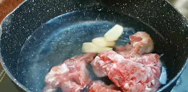 3.把豬骨涼水下鍋焯水,大火煮開後,將豬骨撈起並清洗幹凈浮沫備用。