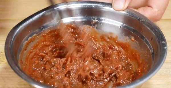 5.準備一個小碗,拿出三塊豆腐乳放進碗裡,用筷子將它們搗碎。然後,一直用筷子攪拌,直到把豆腐乳攪成細膩的糊狀,就可以放在一邊待用瞭。