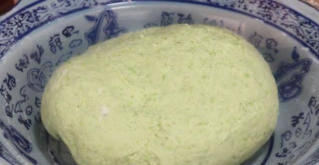 4.給面絮中加入一點食用油,用手揉搓面絮,要多揉搓幾下,並且用手掌使勁按壓它們,直到最後將面絮揉成一個光滑的大面團。然後,取出保鮮膜,給碗口裹上一層,讓面團在裡面蒸發20分鐘。
