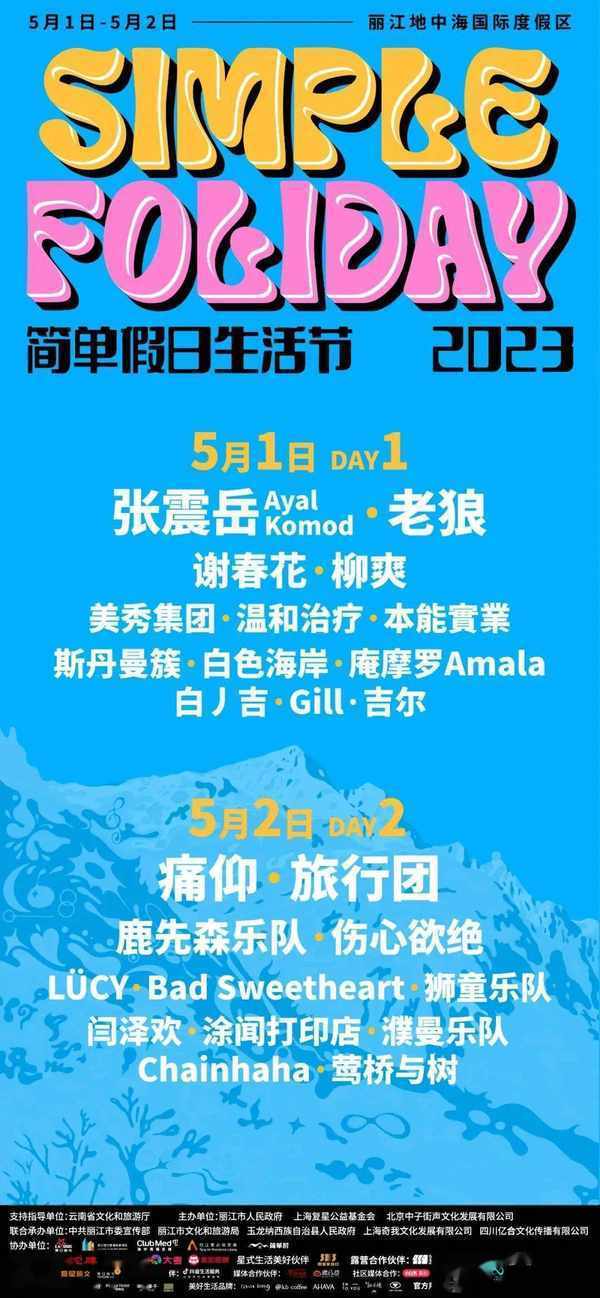 此次2023麗江簡單假日生活節,有許多各具特色的音樂明星齊聚一堂,共同為我們演 繹一場超燃、超勁爆的音樂盛宴。