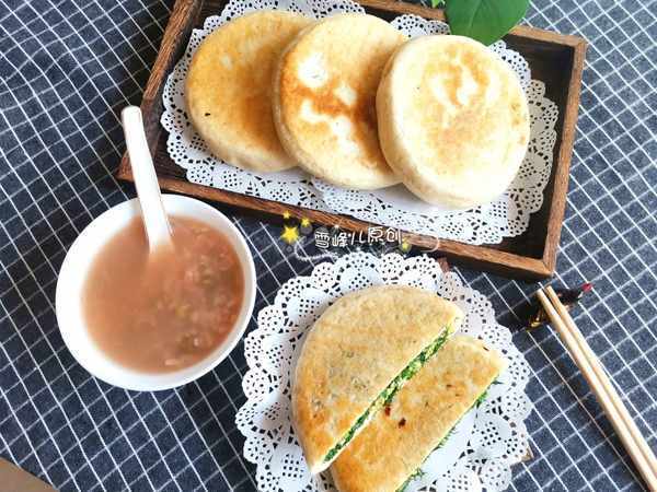 一:雞蛋茴香餡餅+綠豆粥