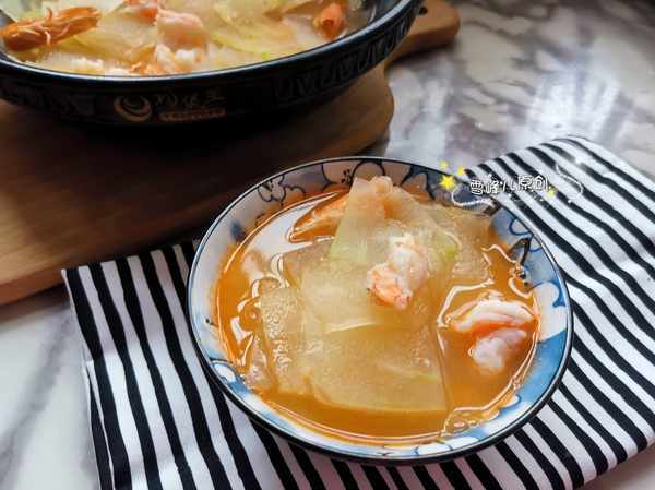 第七步:這道冬瓜蝦湯,是秋後我家常吃的一道菜,湯湯水水最適合秋季,而且不怎麼調味就特別鮮美。