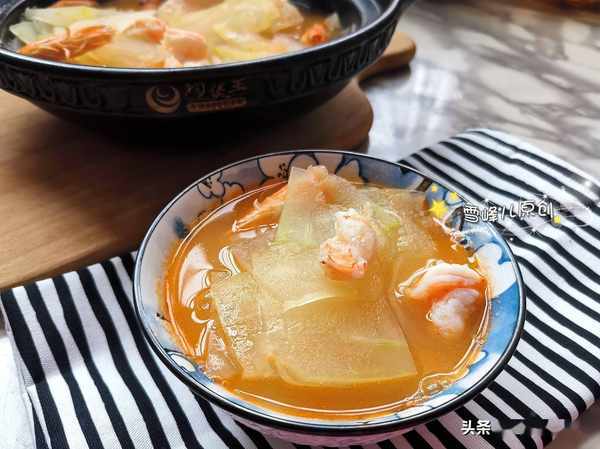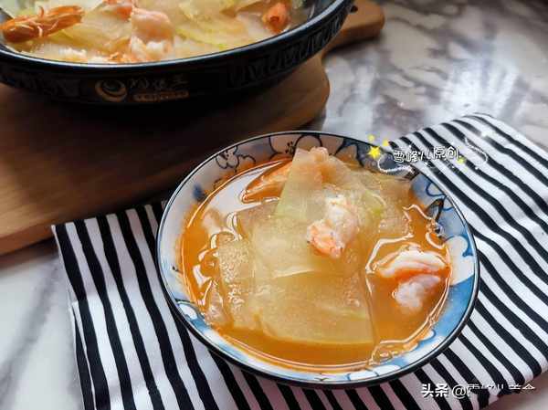 2,蝦頭不要仍,去掉內臟入鍋炒出紅油,然後再倒入冬瓜,這樣湯的味道更鮮美。