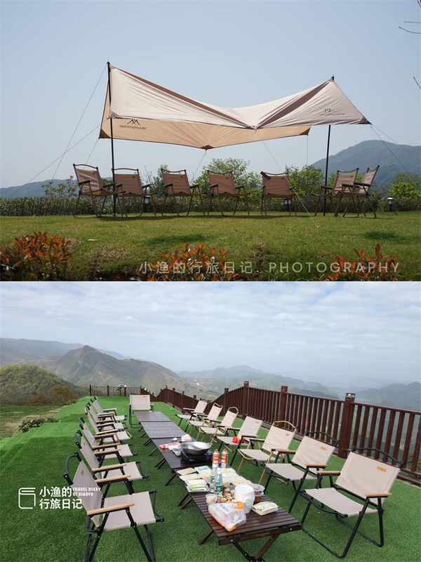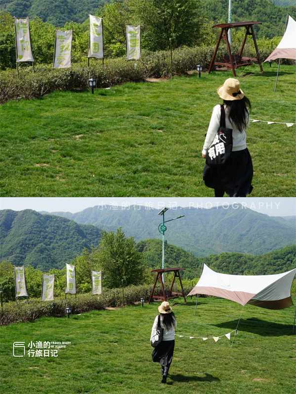 漆樹壩鎮露營基地建在海拔1200多米的茶王山山頂,四周全是茶園,因為茶山地勢起伏很大,造成瞭碧波萬頃的壯觀景象。360度的觀景視角,景色真的超絕。這裡也是看日出和雲海的絕佳位置。