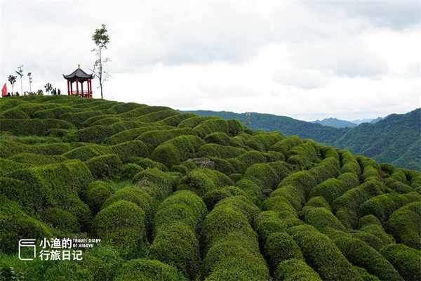 比如瓊熙萬畝生態茶園,這是一個海拔1200米的高山茶園,位於阜川鎮小河廟村茅坡山。因為地勢起伏很大,來到這裡可以從不同角度欣賞茶園的美。