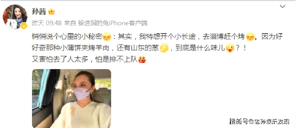 上圖:孫茜的微博截圖