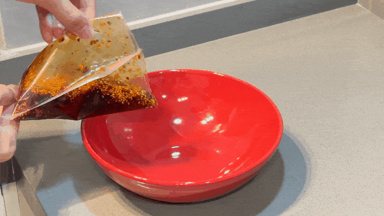 再倒上雞高湯,這一碗調料別說拌雞肉瞭,蘸皮帶吃都香噴噴。