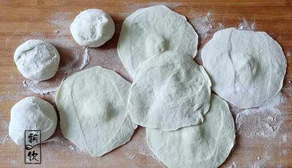 7、小面劑搓圓按扁,搟開成中間厚,邊緣薄的餃子皮。