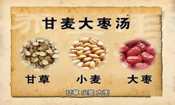 做 法:炒甘草6克,浮小麥30克左右,大棗12克,加適量水煮至開鍋即可。
