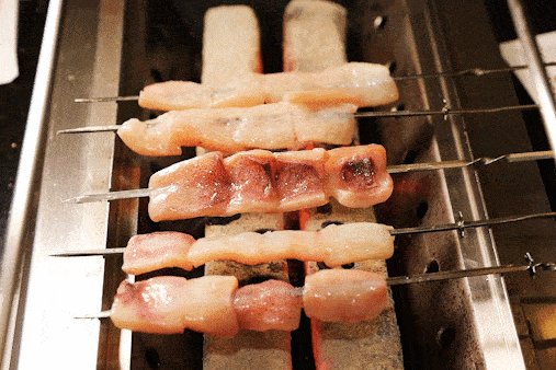 小串比較快熟,記得經常翻轉避免烤焦哦~ 口感真的超級嫩,一口一口停不下裡!
