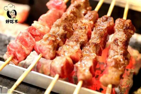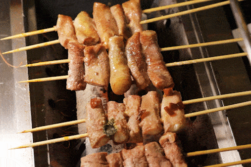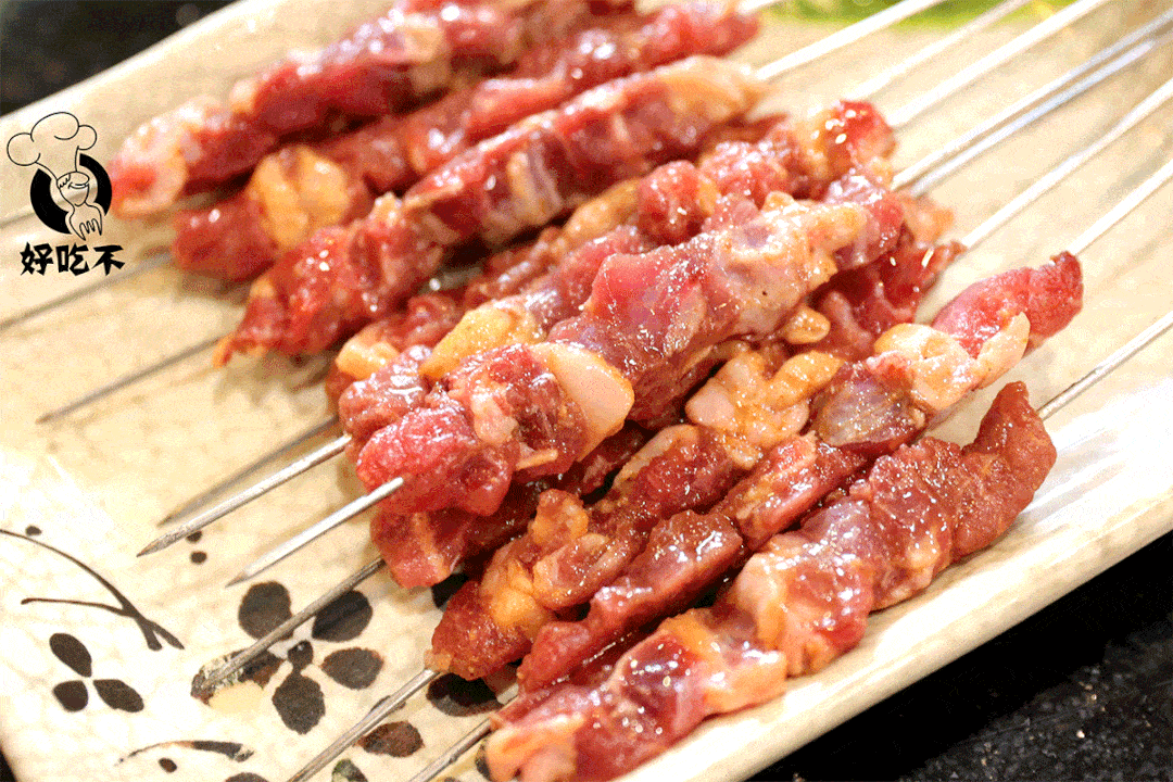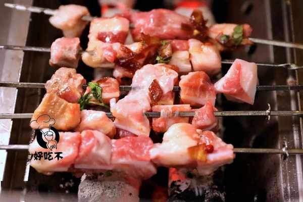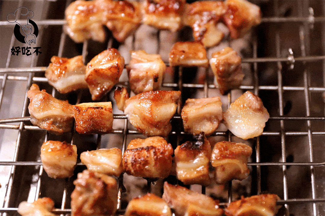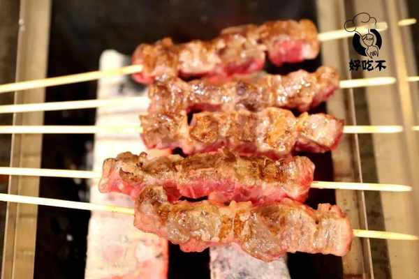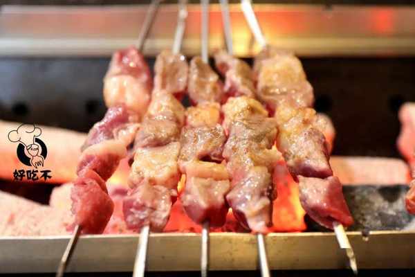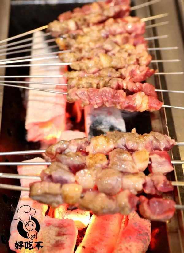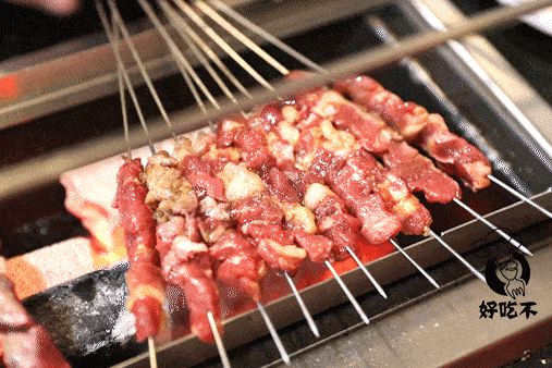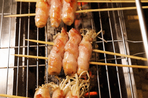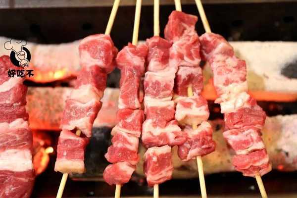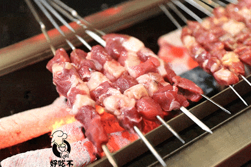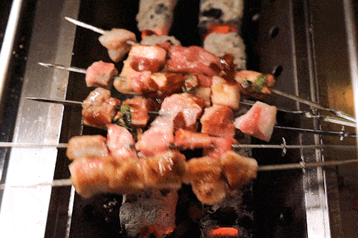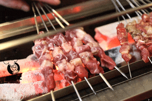 放在紅彤彤的炭火炙烤,看著肉色從粉色漸漸變成褐色,炭火也賦予瞭肉串獨特的煙熏烘烤味道!