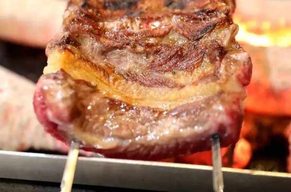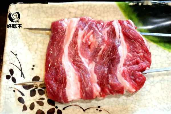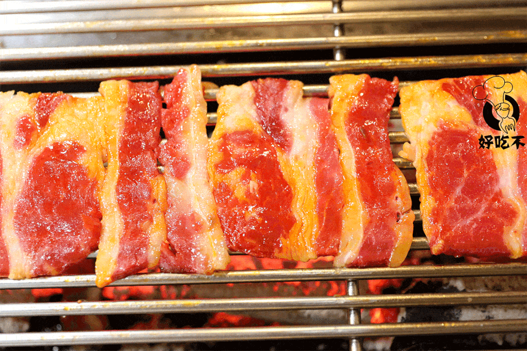 放在烤架上的肥牛滋滋油花直冒,瘦肉和肥肉部分都嫩嫩的,在舌頭滾幾圈就進瞭肚~