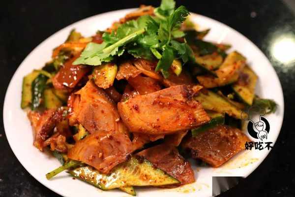肘子肉切片,拌著 酸甜口的醬汁, 有一丟丟麻辣,還 自帶煙熏風幹後的獨特鮮美,肉感十足又富含鮮度,一片一片果真是讓人欲罷不能!