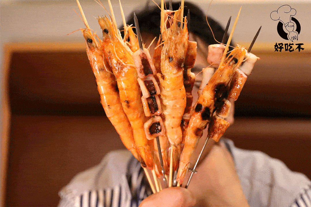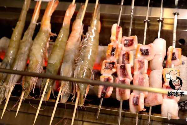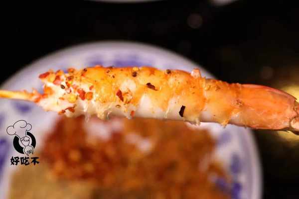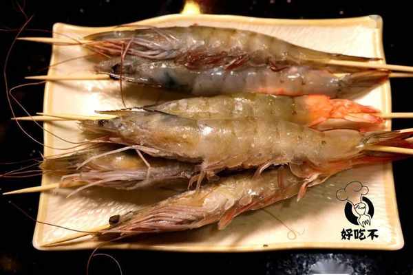 每個南美大蝦都超級粗大,串上竹簽,快和炭火來個親密接觸!