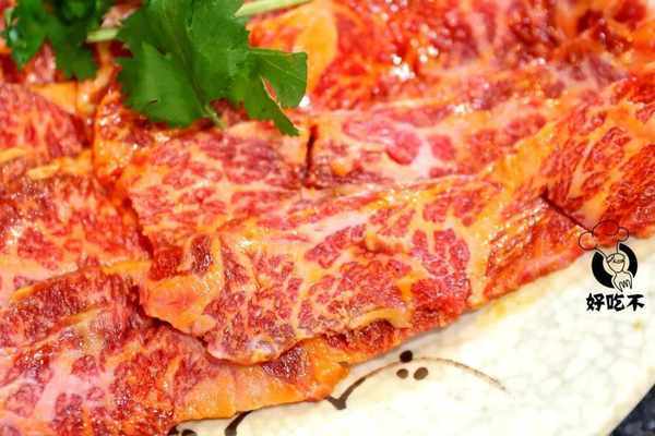 rib部位的牛排,雪花超級誘人,表面還刷瞭一層薄薄的秘制韓式燒烤醬,特別勾人食欲!