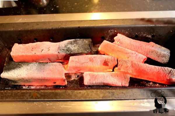 每桌都備著炭火燒烤用的烤爐,當紅紅的炭放入烤爐,還沒開烤就能感受到熱騰騰的煙火氣。現點現烤趁著熱乎勁吃的食物,特別有味呢!