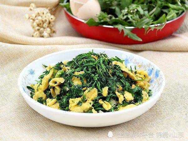 3.起鍋燒油,油熱以後,倒入薺菜雞蛋液快速翻炒均勻,炒至成形熟透後,即可出鍋開吃。