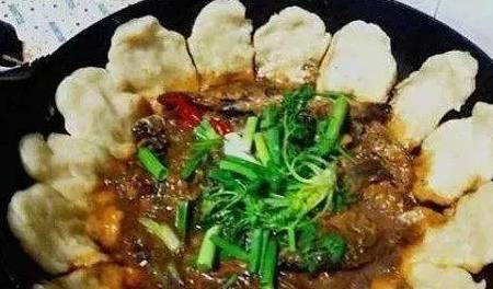 用剛捕到的小魚,洗凈後去鱗剖腹,取出腸膽等內臟,隨即用清澈的湖水燒煮。同時和上一些面糊,在鍋的中部四周貼上一層簿餅,餅底平水,或入水半寸,火燒水沸、湯汁四濺,故熟後餅底邊有一溜子沾有魚湯。乍一揭去鍋蓋,面餅沾著魚鮮,魚兒帶著餅香,鮮香美味撲面而來。