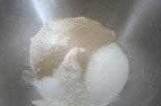 1、面粉、糖、鹽和酵母粉入盆,混合均勻;
