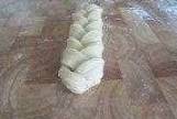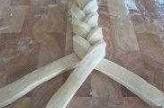 18、每三條一組,切面朝上,略壓扁編成辮子;編的時候切面始終朝上,不要編得太緊,太緊會影響下面的發酵,切記!